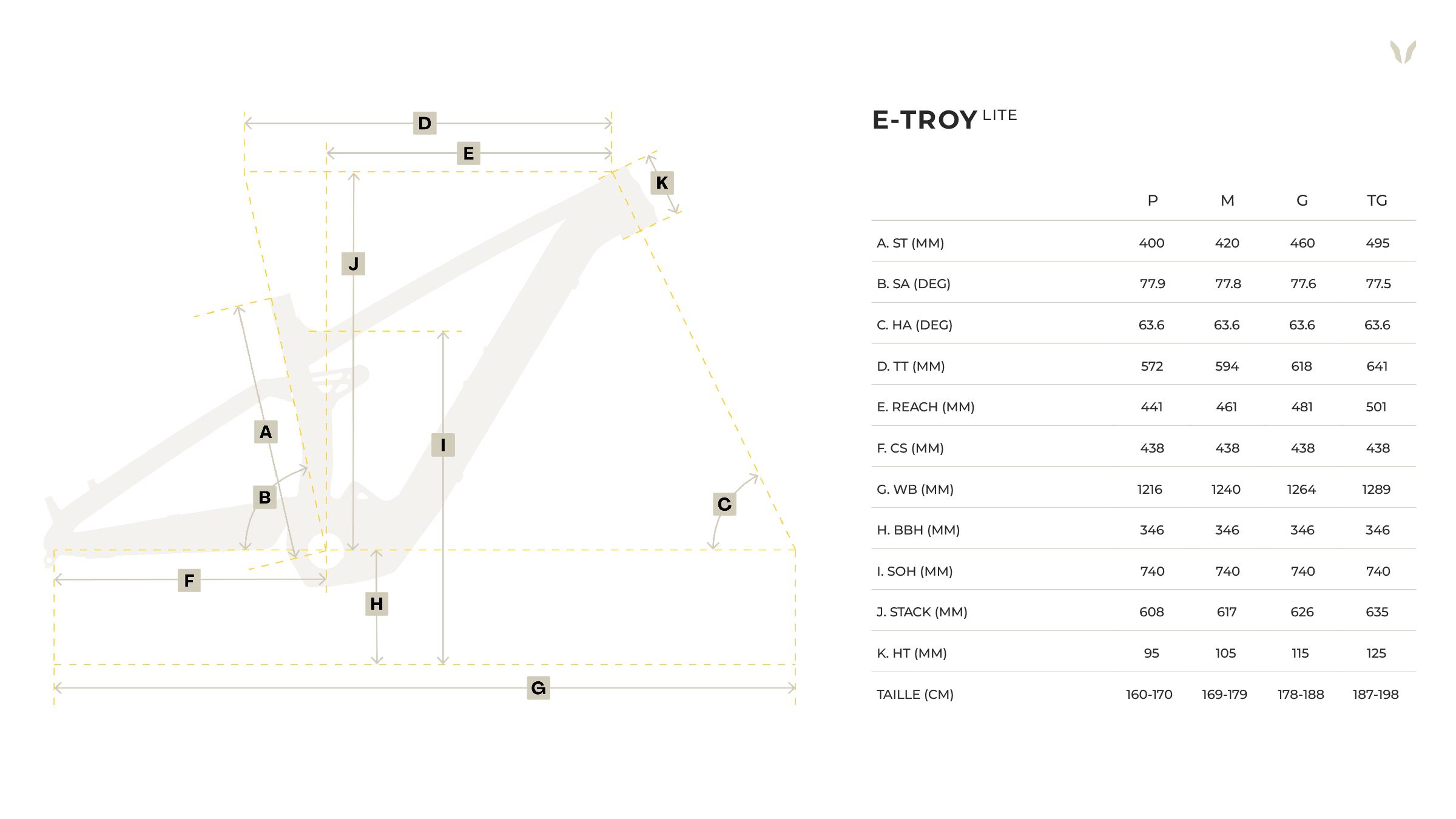 Le E-Troy Lite a été conçu avec une fourche de 160mm et nous ne recommandons pas l'utilisation d'une fourche avec plus de débattement.