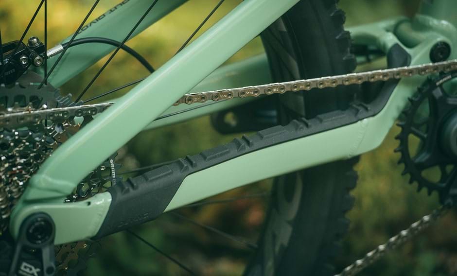 La base arrière et le bas du tube diagonal sont protégés pour faire face aux claquements de la chaîne et des aspérités du terrain.